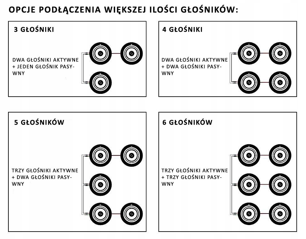 Lithe Audio Bluetooth -динамики позволяют максимум три активных динамика, например, В более крупных комнатах - используя функцию lithelink . Просто подключите каждый из активных динамиков с усилителем, чтобы расширить вашу аудиосистему. Каждый активный динамик может быть подключен к одному пассивному динамику, поэтому в стерео или моно -системе вы можете иметь 6 динамиков. Вы можете создать систему «зоны» благодаря этому решению.