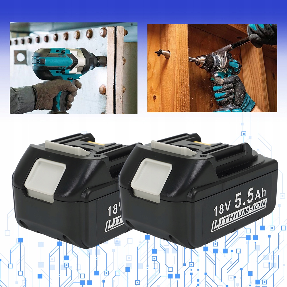 ЛИТИЙ-ИОННЫЙ АККУМУЛЯТОР 5500МАЧ 18В ЗАЩИТА ОТ ПЕРЕГРЕВАНИЯ 2 ШТ. ДЛЯ BL1860B