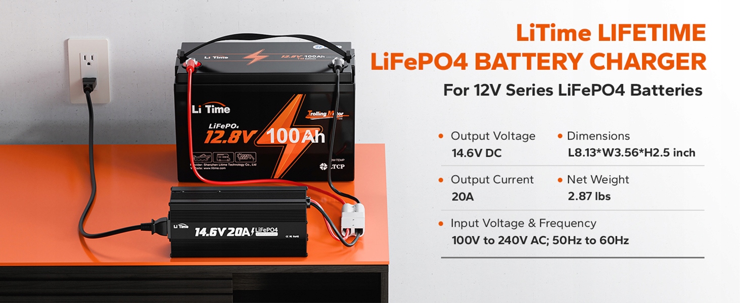 Зарядное устройство для литиевых батарей LiTime 12 В, 20 А LiFePO4 — популярное зарядное устройство. Его превосходные характеристики делают его вашим зарядным устройством для аккумуляторов для автофургонов и аккумуляторов для троллинговых двигателей на всю жизнь. Для полной зарядки литиевой батареи 12 В, 100 Ач требуется 5 часов.