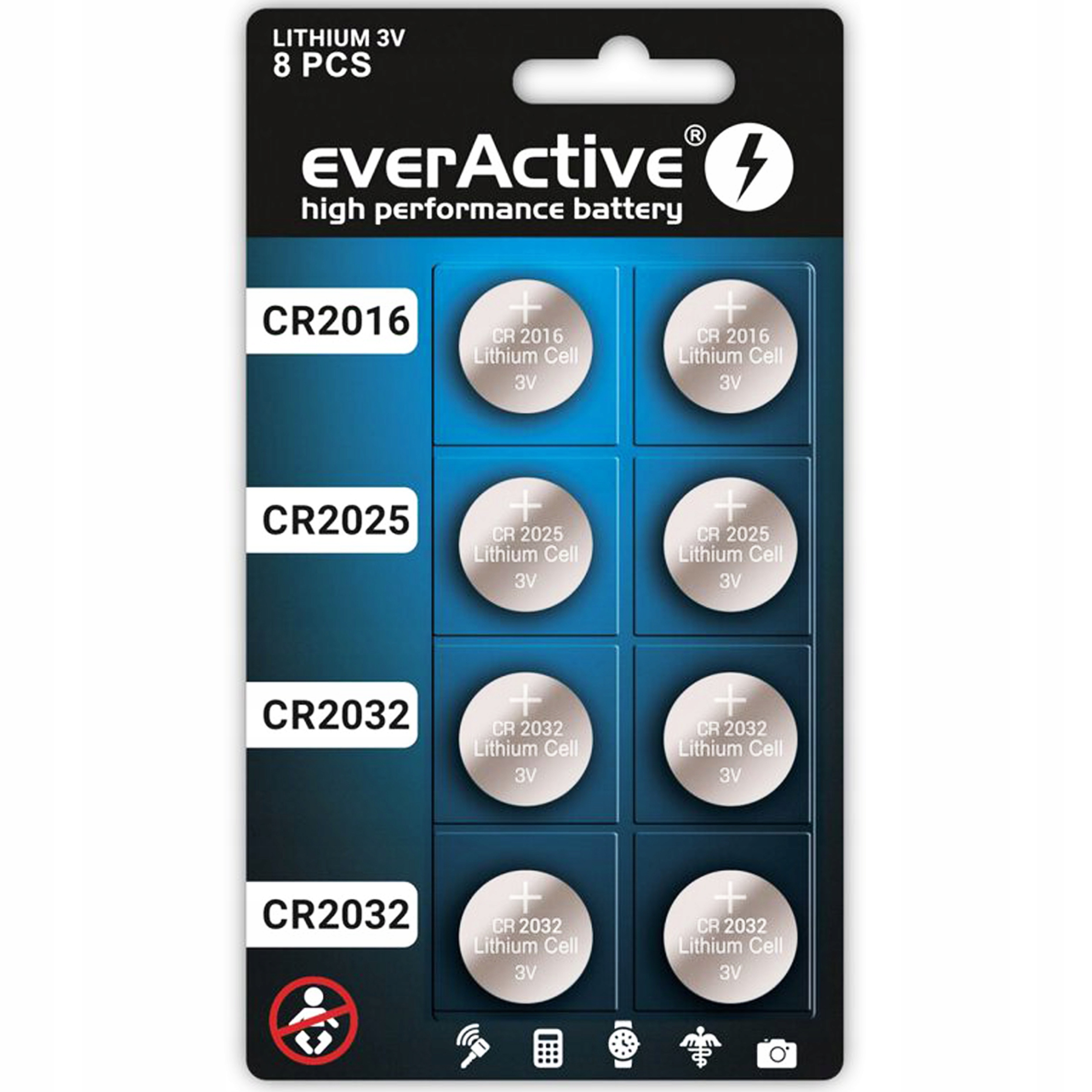 8 батарей EverActive CR2032 CR2025 CR2016 3 В