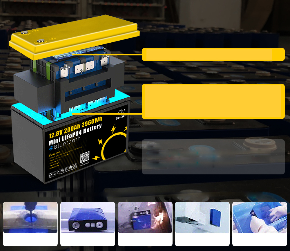 Литиевая батарея LiFePO4 BMS 12V 200AH 2560WH Bluetooth Mini 4000+ циклов