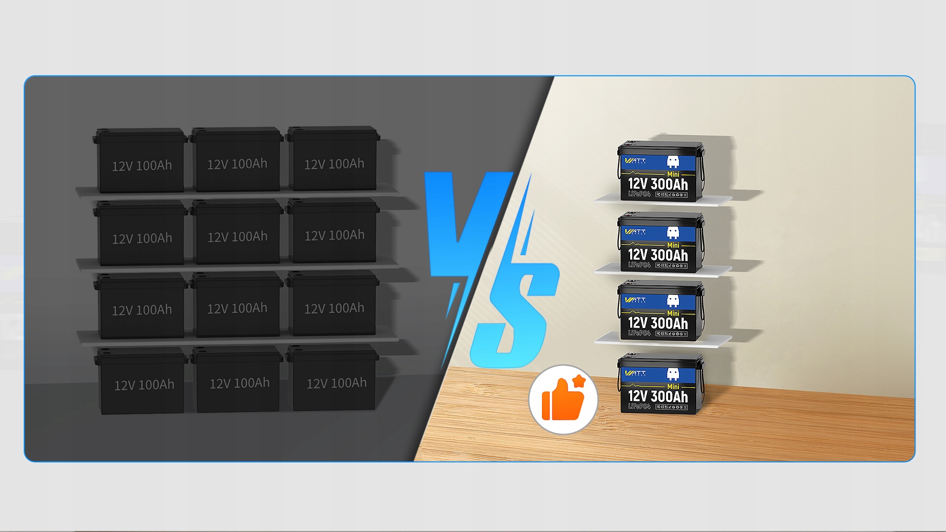 【 Миниатюрный размер, огромная мощность 】: Наша мини-батарея 12 В, 300 Ач использует преимущества доступных функций и имеет размеры всего 15,12 * 7,64 * 10,04 дюйма, но при этом выделяет невообразимое количество энергии для питания вашего оборудования. Его форма также подходит для различных автодомов.