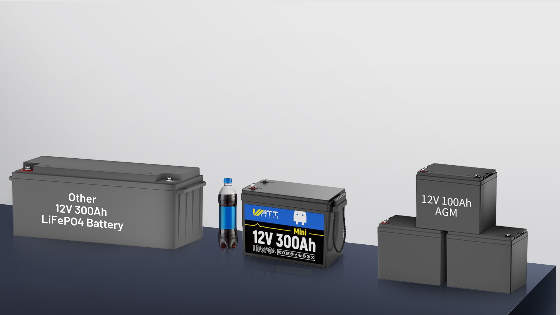 Литиевая батарея WattCycle, 12 В, 300 Ач, LiFePO4, мини-размер, 200 А, требуется BMS