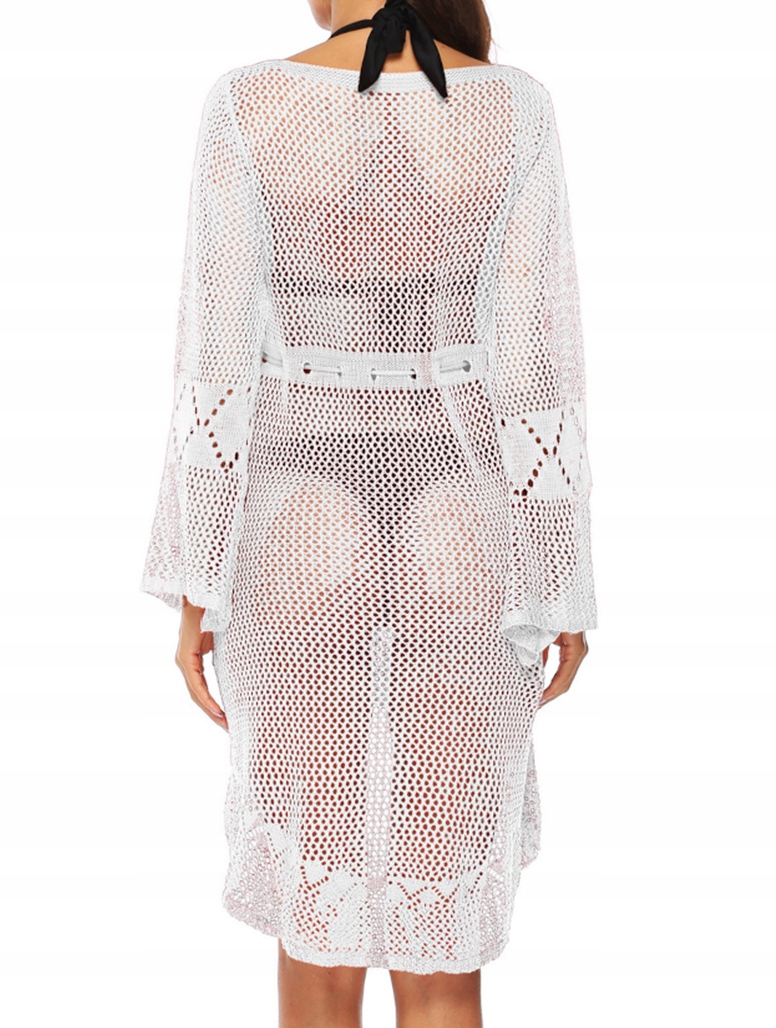 ☀️ Туника с длинными расклешенными рукавами выполнена из ажурного материала, имеет завязку на талии, обеспечивающую идеальную посадку по фигуре.