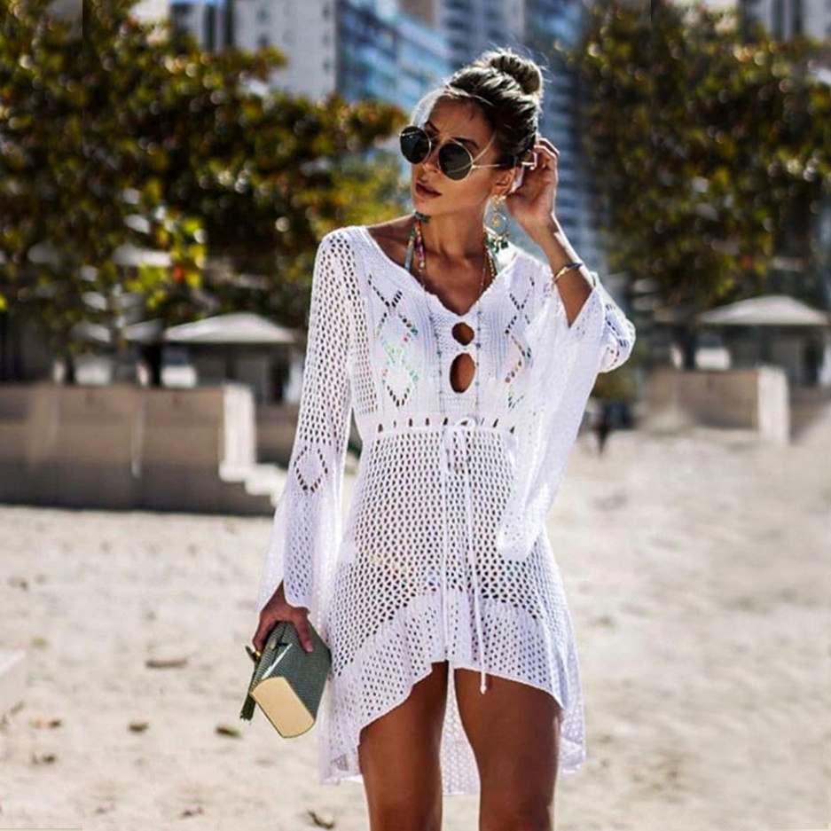 ЛЕТНЕЕ ПЛАТЬЕ ЖЕНСКОЕ, ПЛЯЖНАЯ ТУНИКА, АСИММЕТРИЧНОЕ КРУЖЕВО, ПАРЕО
