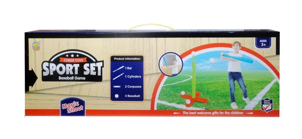 Бейсбольный игровой комплект. Дети смогут сыграть в эту игру, что заставит время, которое они проводят на улице. Включает в себя: палку, 4 шара, 1 цилиндр, 2 тела, чтобы установить подставку для шарика. Продукт упакован в картонную упаковку. Продукт предназначен для детей с 3 лет. Размеры являются размерами.
