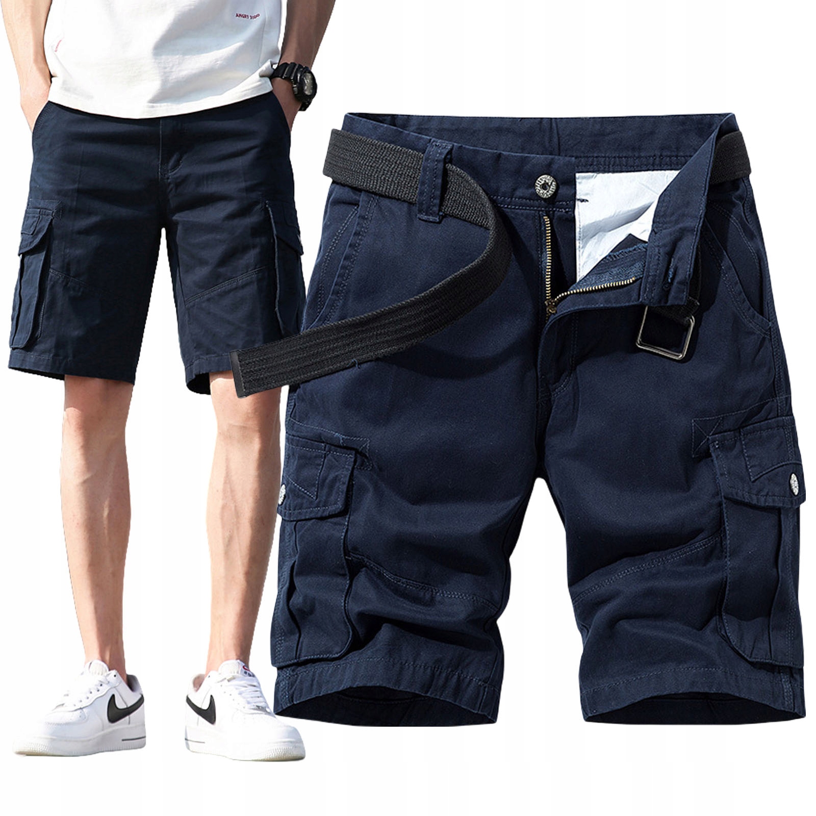 Летние мужские хлопковые грузовые котлеты Короткие ополченцы с карманами темно -синий h2>