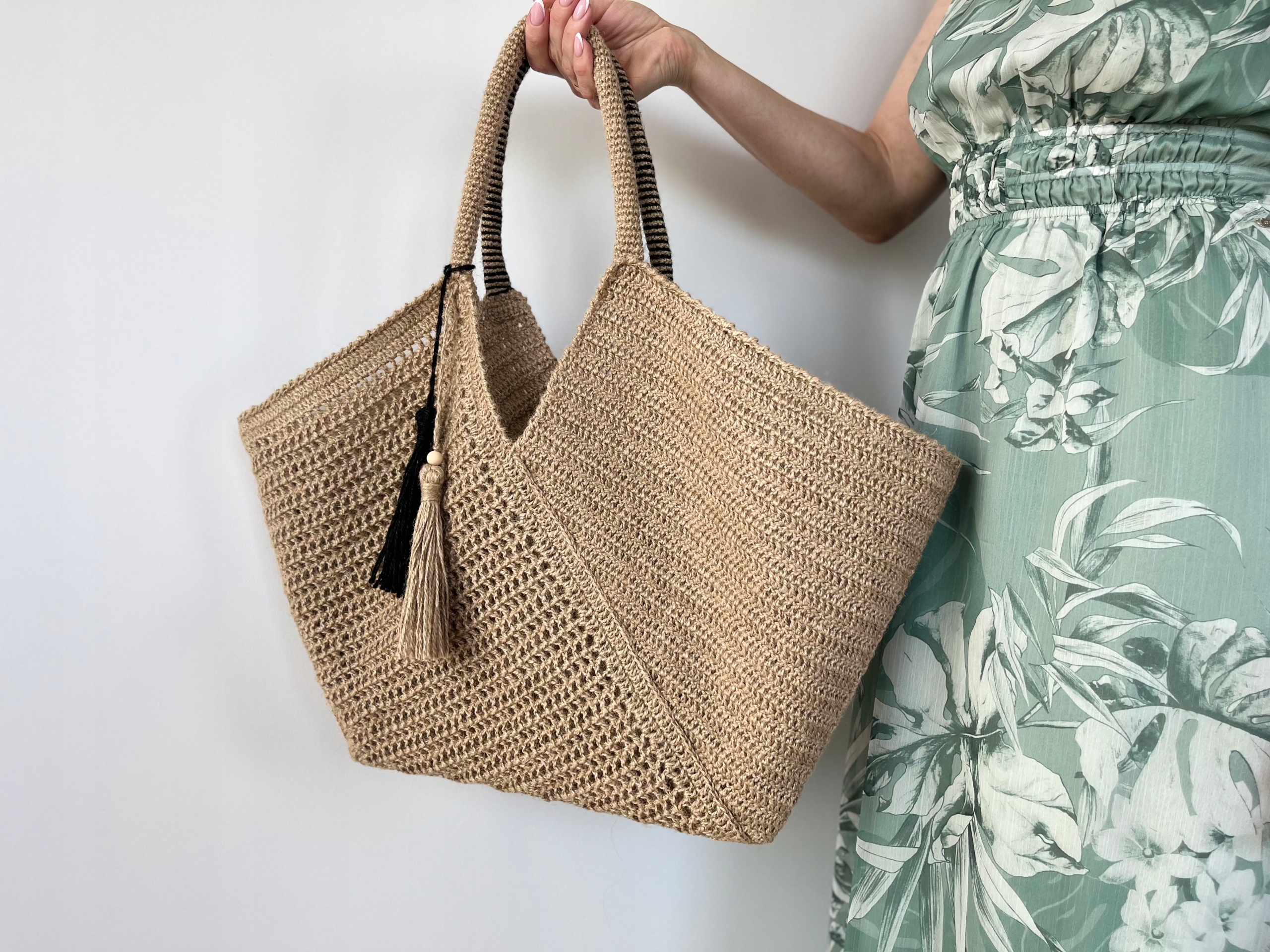 Summer Tide Tote - легкая и вместительная джутовая сумка, идеальный компаньон лета. Сделанный в ручном вязании крючком, это идеально как пляжная сумка, летняя сумка и практическая женская сумка для покупок. Его бесплатный характер и нейтральный цвет будут идеально дополнены летними стилизациями - от купальника до воздушного платья.