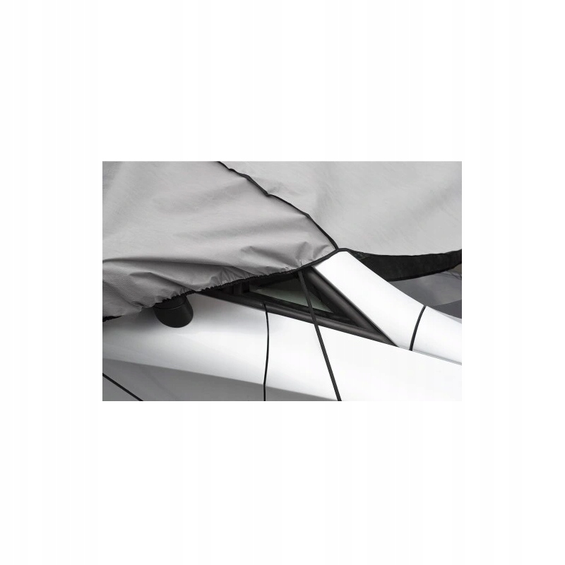 Просто прикрепите эластичные петли чехла безопасными крючками к ободам, нижнему краю посередине автомобиля и нижнему краю заднего бампера.