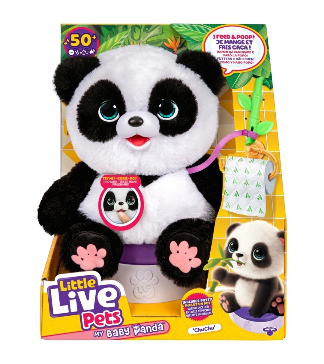 Маленькие живые питомцы Моя маленькая панда! ЧуЧу, детеныш панды, — самое милое животное в мире! Благодаря более чем 50 звукам и реакциям ЧуЧу не только звучит как настоящая панда, но и двигается как панда.