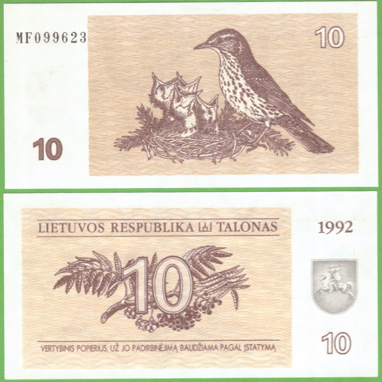 ЛИТВА 10 ТАЛОНАС 1992 Р-40 UNC