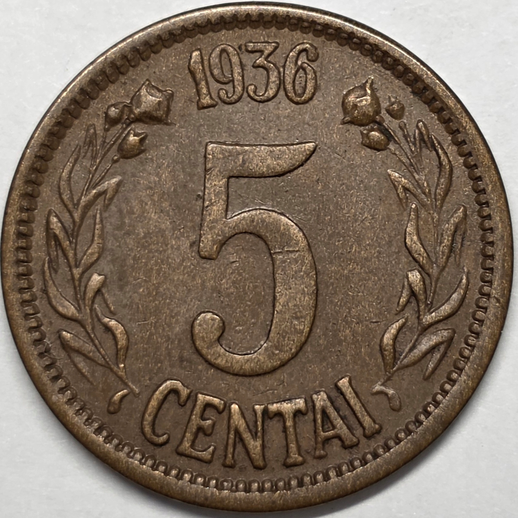 Литва 5 центов 1936 рыцарь скачет интересная монета уникальная красивая S193