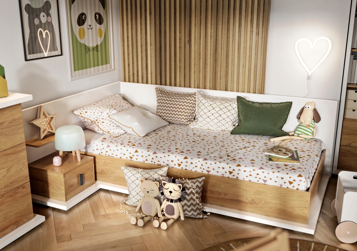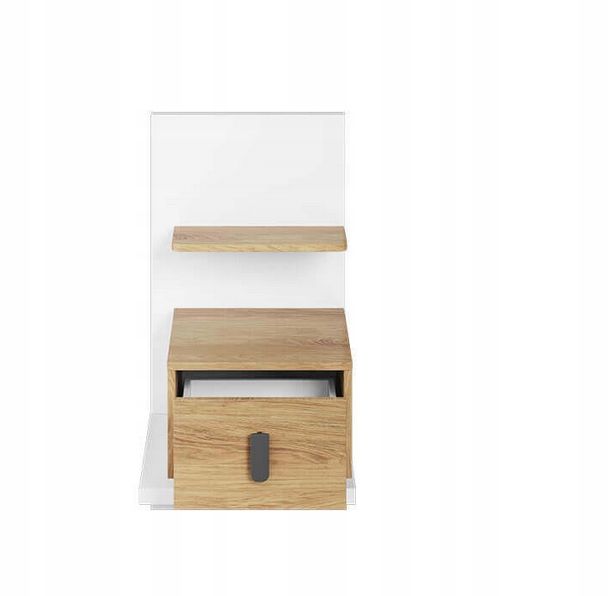 Элегантная ночная таблица SIMI с оригинальной и современной формой Полем Смертельный ящик обеспечивает легкий доступ к вещам, размещенным внутри. Верх ящика и небольшая полка позволяют вам удобно убрать самые необходимые предметы - телефон, будильник или крем для рук. Смесь задней части и расширенная база делают мебель очень оригинальной. Благодаря этим элементам, прикроватная стола создает модную и эффективную целую с кроватью MS-08L. Мебель сделана из прочной ламинированной пластины, отделанной прочным краем. Полетая версия