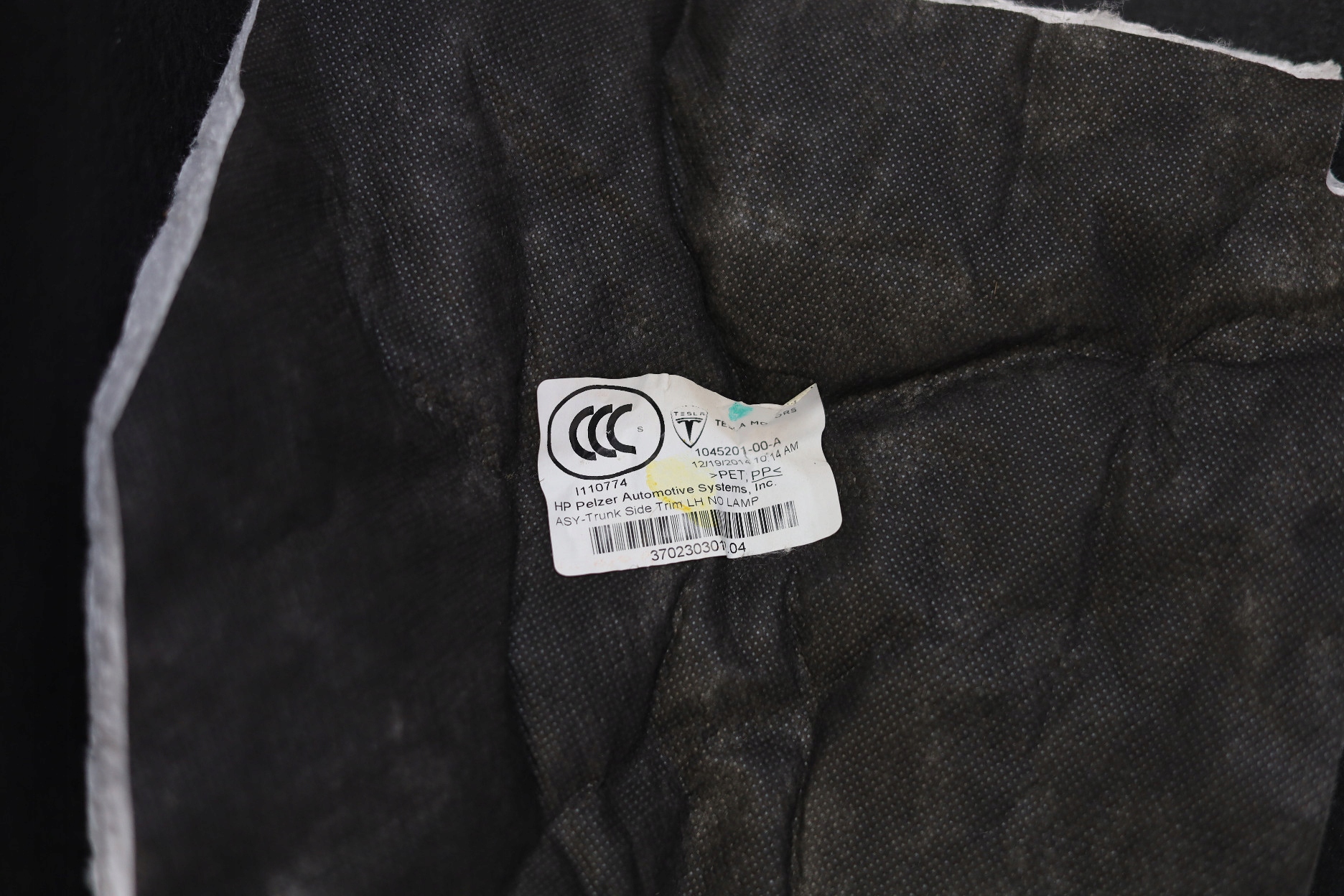 Оставленная обивка бекона Tesla Model S P85 2015. 1045201-00-A