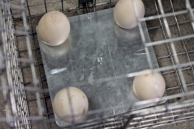 Животные попадают в ловушки такого типа и сразу попадают в ловушку. После вытаскивания одного яйца все перевернется, и спусковой механизм закроет ловушку, удерживая животное внутри.