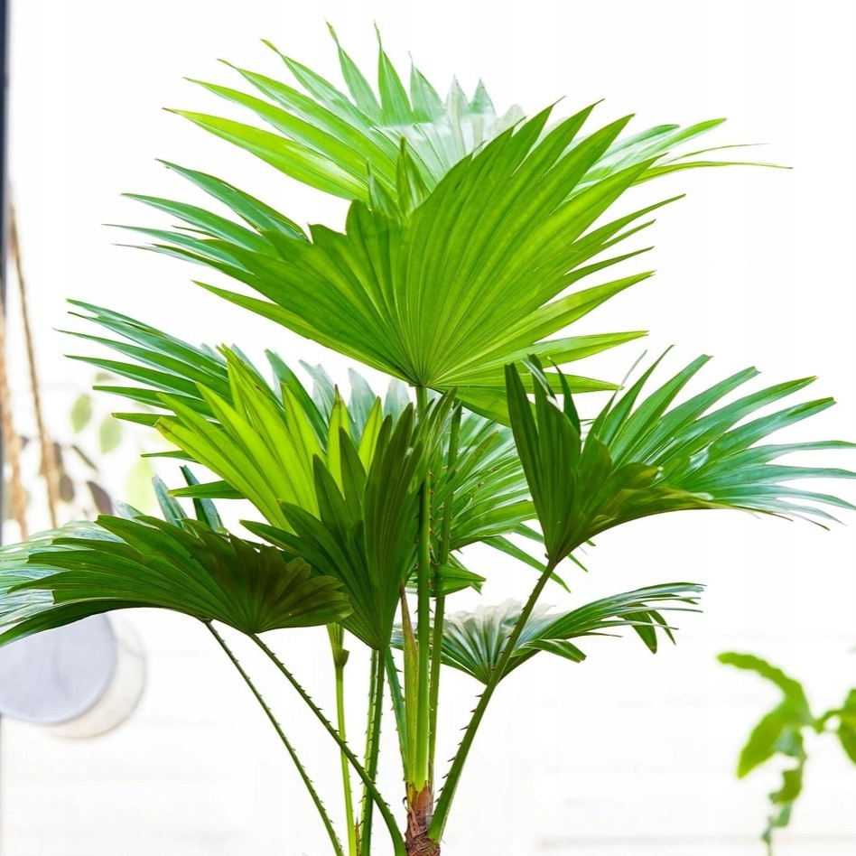 Ливистона — медленнорастущая пальма, которая в природе встречается в тропических лесах восточной Азии. Мы можем найти его как растение, выращенное в горшках по всему миру. Начиная свое зеленое приключение с ливистоном, не забудьте обеспечить ему достаточно места – в домашних условиях он может достигать 3 м в высоту! Он очень привлекателен – его главным украшением являются огромные, веерообразные, остро рассеченные листья. Посаженные на длинные жесткие побеги, они изящно раскидываются, создавая интересную форму. Листовая пластинка пальмы насыщенно-зеленая, блестящая, пальчатая. Это неординарное украшение, способное стать изюминкой любого интерьера.