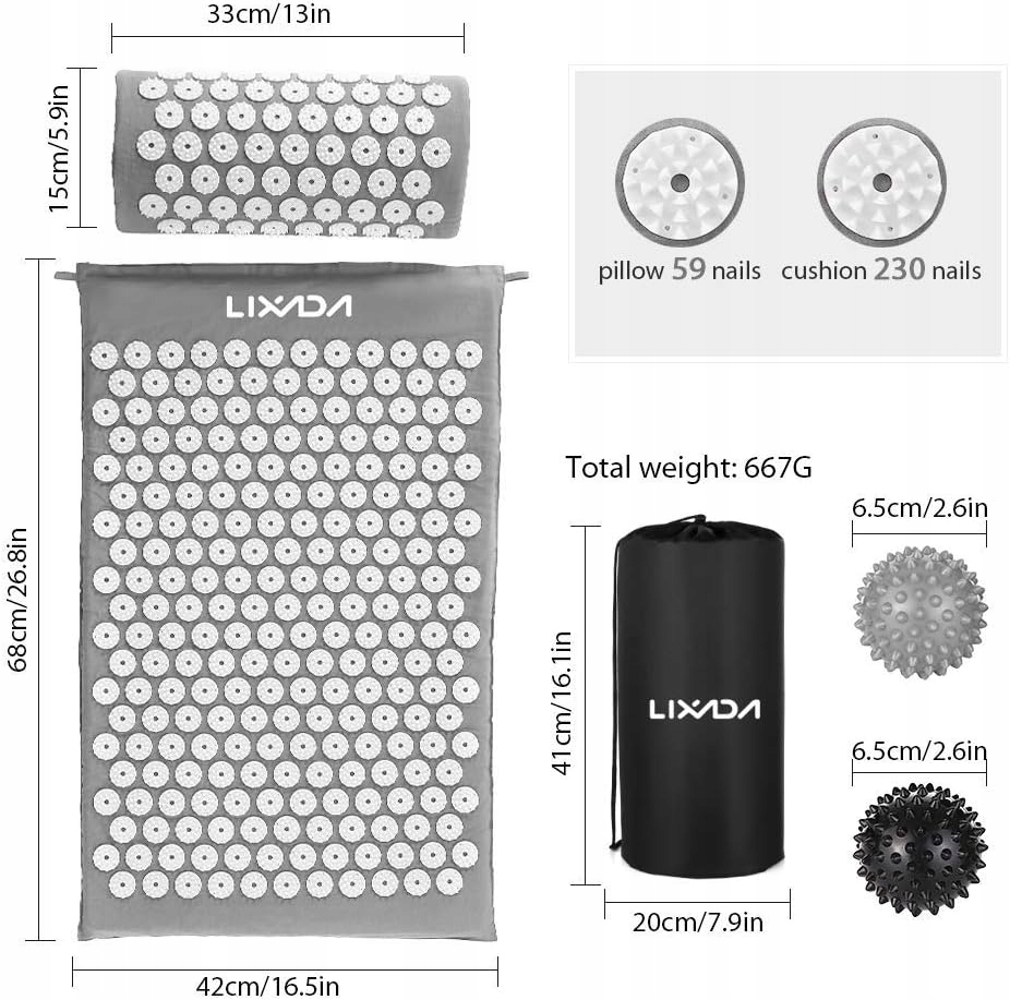 - Portable: Acupressure Lixad набор является легким и портативным, а также оснащен удобной сумкой для чистого и простого хранения. Идеально подходит для мужчин и женщин, чтобы брать йогу, в офис или для долгого путешествия.