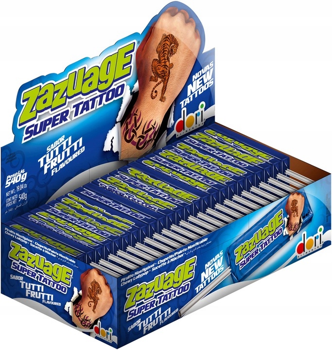 Lizak ZAZUAGE TUTTI FRUTTI 50 sztuk z tatuażem