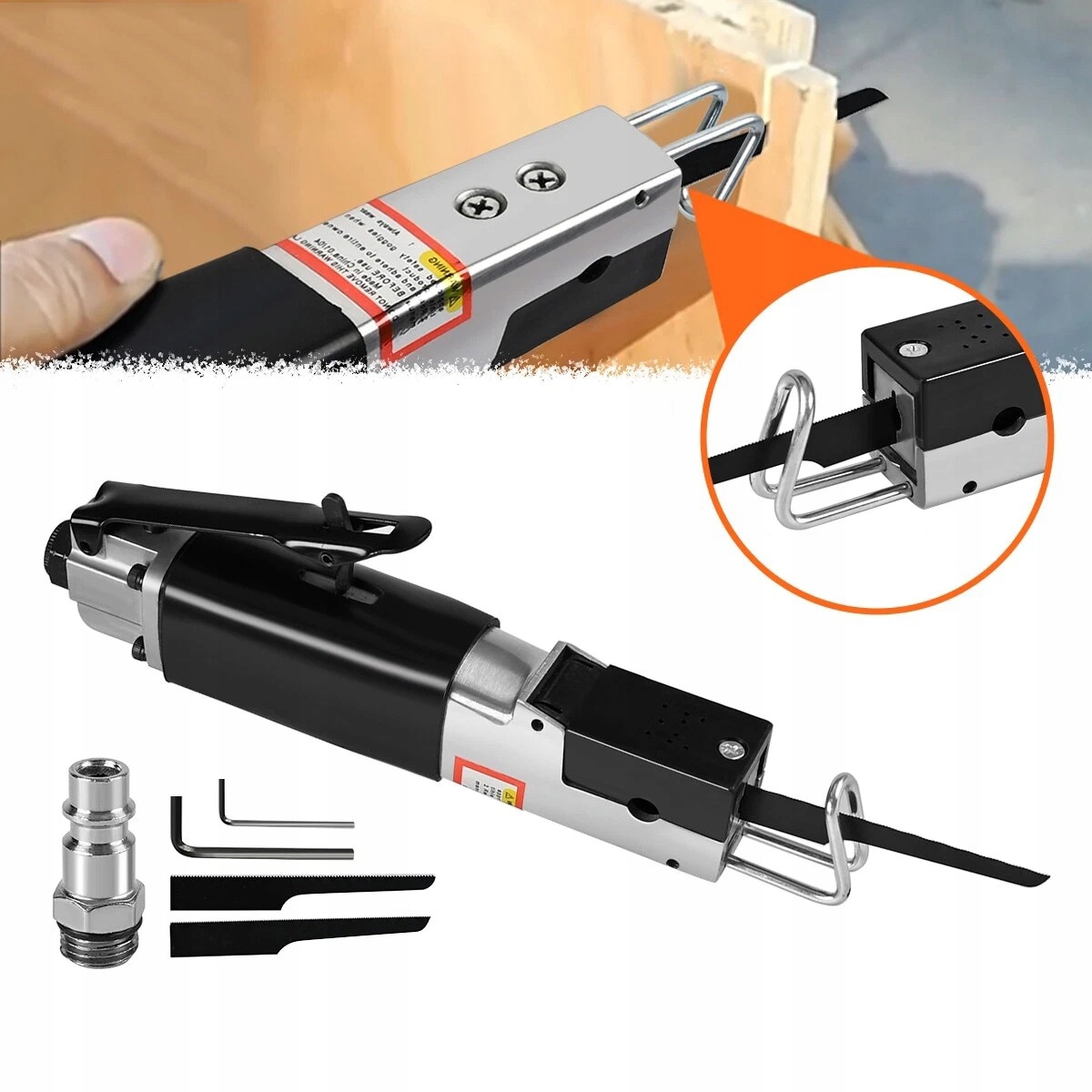 ✅ Руководство пользователя: Пневматическая пила требует компрессора; Вы можете использовать любой маленький компрессор. Лезвия можно легко заменить с помощью прикрепленного ключа Allen.