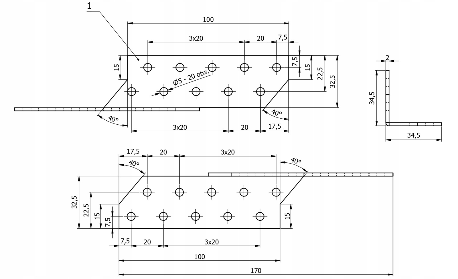 - количество отверстий - 20 отверстий ø5мм