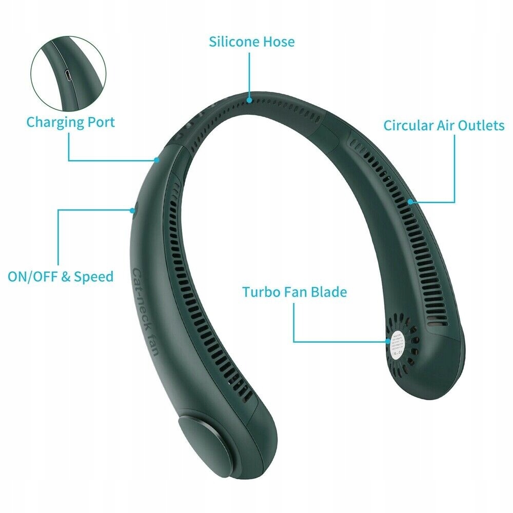 .Дизайн с вращением на 360 градусов. Наш небольшой бесконтактный вентилятор на шее, оснащенный двумя вентиляторами, может быть воздушным и обеспечить исключительный комфорт. Этот воздухоохладитель с шейным ремнем обеспечивает гибкую регулировку направления на 360 градусов, что позволяет вам найти наиболее подходящее направление ветра. Повесьте эти классные вееры на шею и носите их куда угодно.