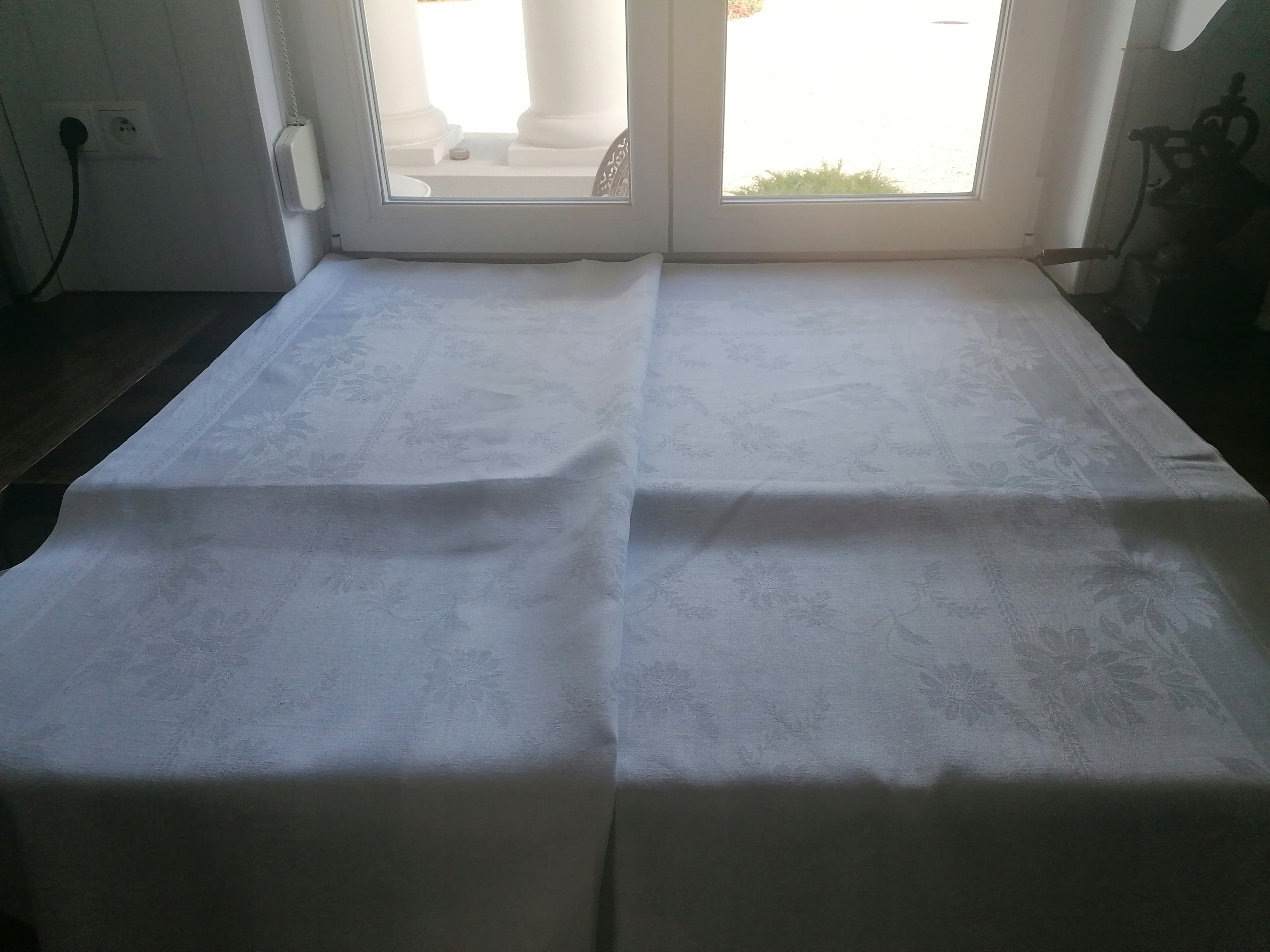 ЛЬНЯНАЯ СКАТЕРТЬ ДАМАСК АСТРА МАЛЕНЬКИЕ ПОДСОЛНУХИ РЕШИЛА С СЛЕДОМ ПОДСОЛНУХОВ ИНИЦИАЛЫ ЧУДЕСНАЯ, НЕРАВНАЯ ВОДА.