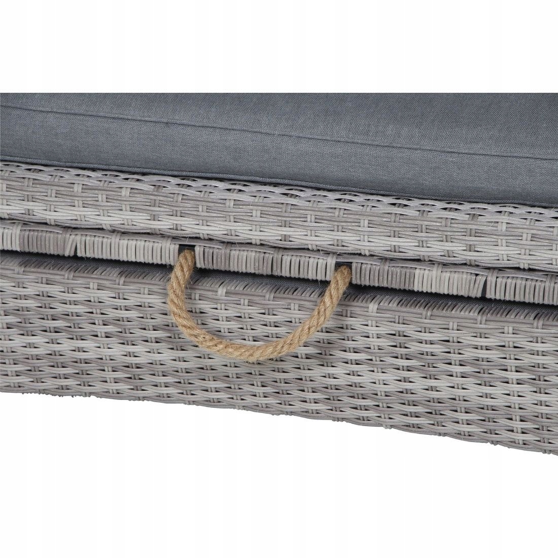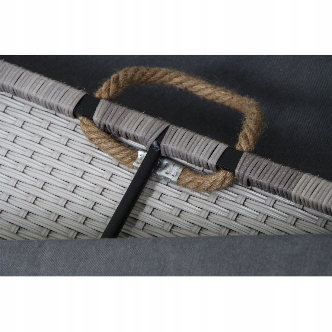 В качестве материала каркаса производитель выбрал качественный алюминий. Каркас из высококачественного техноротанга придает террасе естественную атмосферу. Этот материал отличается высокой устойчивостью к погодным условиям. Кузов окрашен в стильный цвет Flint Grey. Чехол дивана изготовлен из синтетического волокна.
