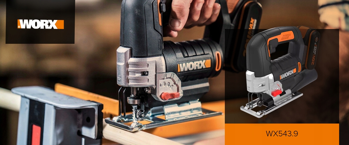 Аккумуляторный лобзик WORX WX543.9 с длиной хода 24мм и напряжением 20В.