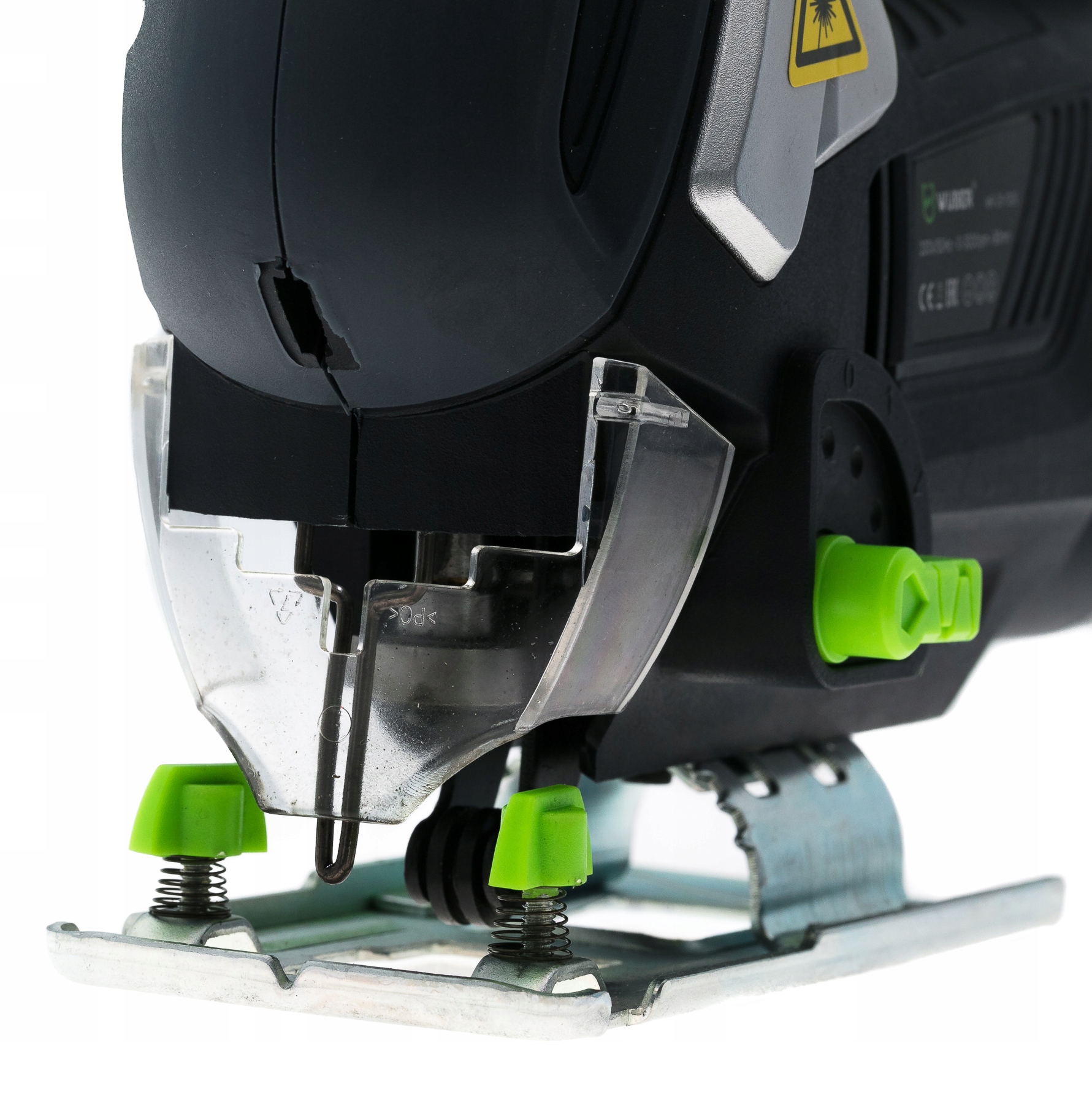 В лобзике используется лазерная направляющая, позволяющая задать прямую линию реза для устройства