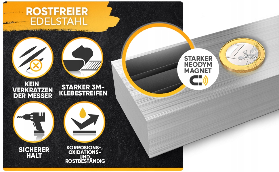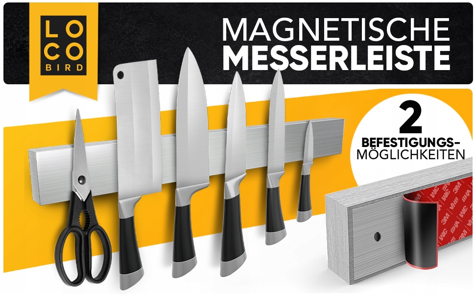 - ЛЕГКАЯ УСТАНОВКА. Для установки не требуется дрель, поскольку ножевой магнит крепится быстро и надежно благодаря высококачественной, прочной клейкой ленте.