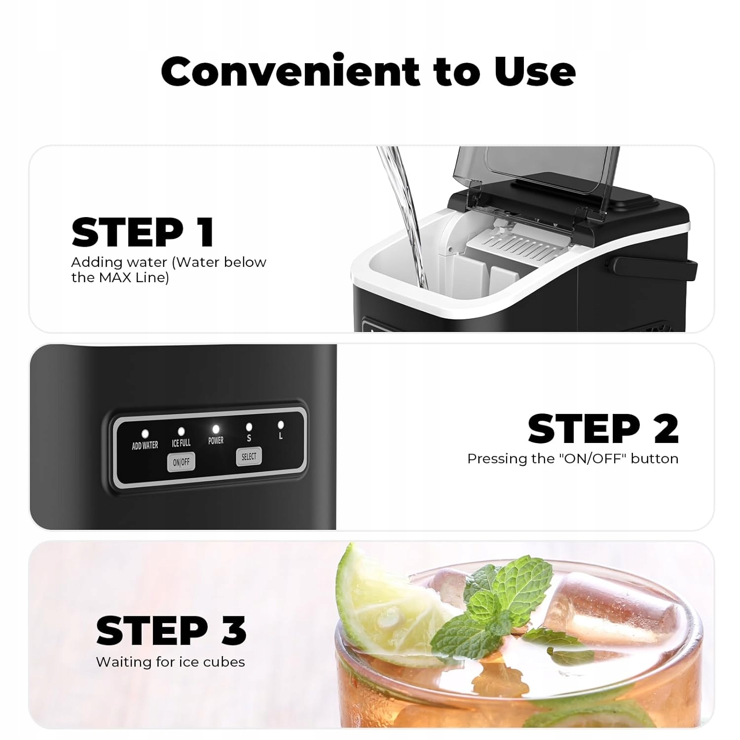ИЗГОТОВИТЕЛЬ ДЛЯ ЛЬДА 12 КГ, 6 МИН, КОМПАКТНЫЙ, ТИХИЙ, САМОЧИСТЯЩИЙСЯ, 2 РАЗМЕРА