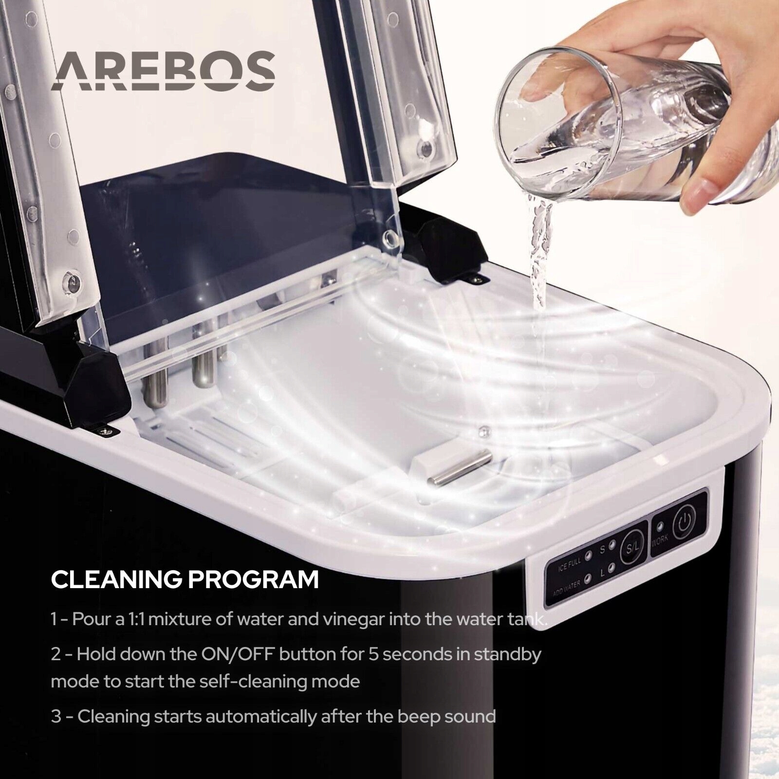 Машина для изготовления кубиков льда AREBOS, Ice Cube 12 кг/24 часа, время изготовления 10-15 минут, кубики льда 2 кг, резервуар для воды 2,0 литра, тихий, функция самоочистки, черный цвет