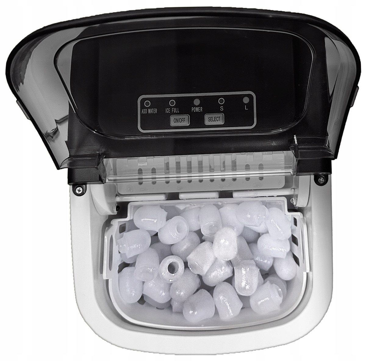 - Функции: ● Электронная панель управления со световыми индикаторами: включение, выключение, рабочее состояние, отсутствие воды, заполнение резервуара кубиками льда, выбор размера кубиков (S и L), ● Резервуар для воды емкостью 1,2 л, ● Резервуар для льда емкостью 0,6 кг, ● Ручка для переноски, ● Тихая работа, ● Функция самоочистки исключает риск появления плесени и бактерий