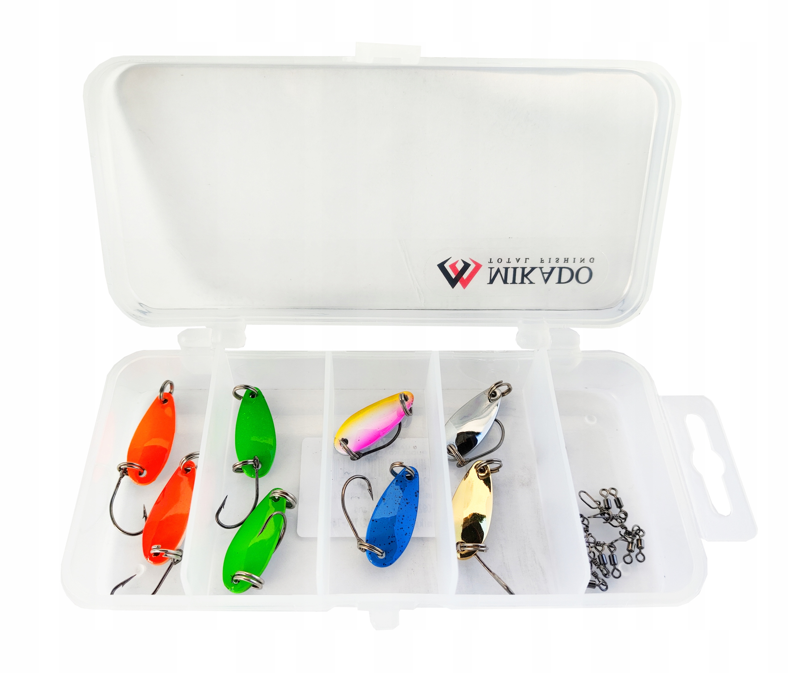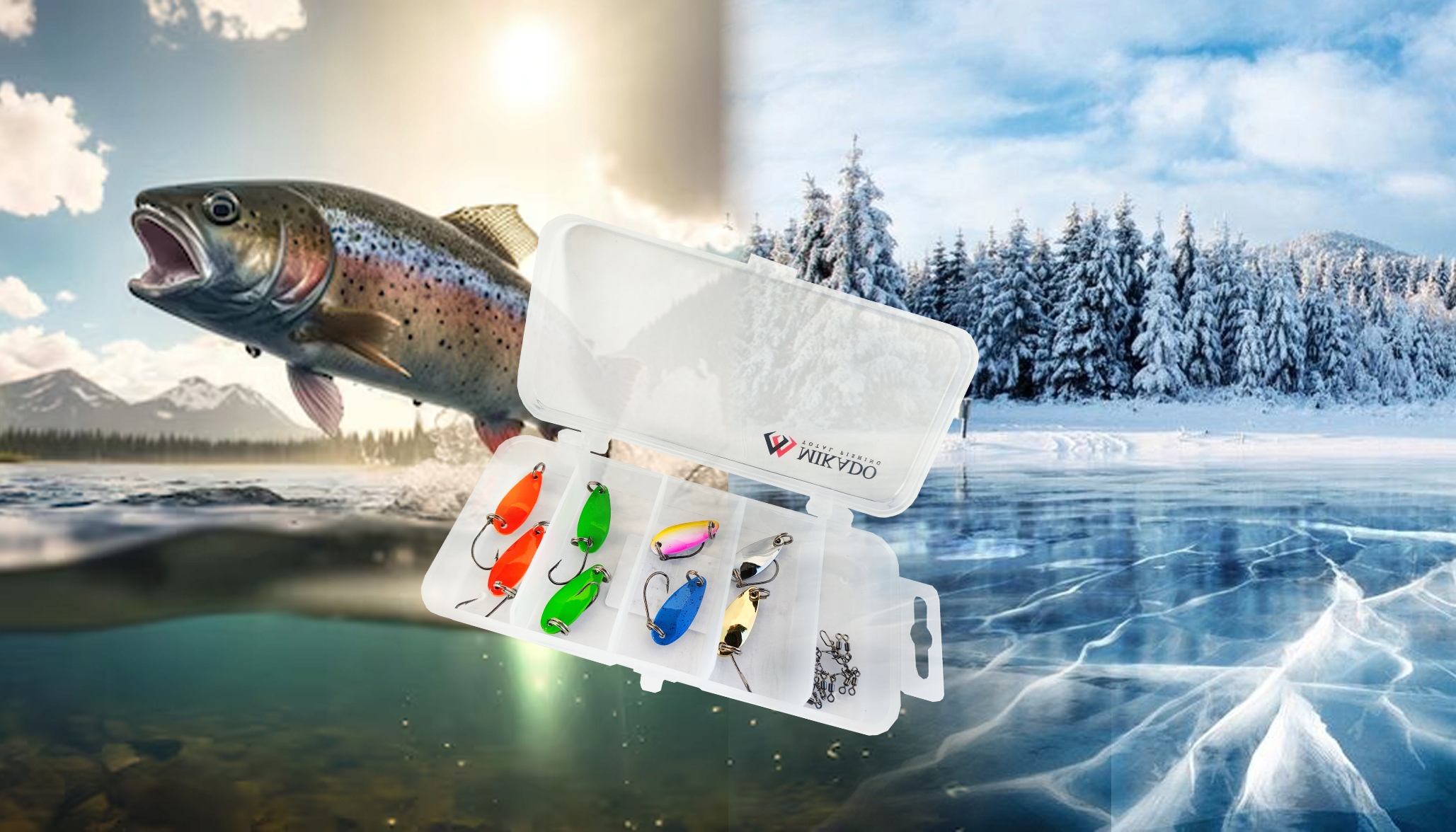набор ниток Okoń - форель Mikado Ice Fishing h1> Смешивание/ смесь цветов + коробки + булавки с плаванием с булавками безопасности. Ледяной окунь, но также и для форели в текущих водах. Мега эффективно для форели в любое время года и зимние окуты > Все закрыто незаменимыми булавками по обеспечению быстрого обмена Микадо. Благодаря этому решению, вам не нужно беспокоиться о прикреплении небольших булавок. Те, которые у вас есть в этом наборе, позволяют вам легко менять приманки без необходимости закрепить. Этот быстрый патент делает рыбалку гораздо более приятным, даже когда пальцы онемел от холода.