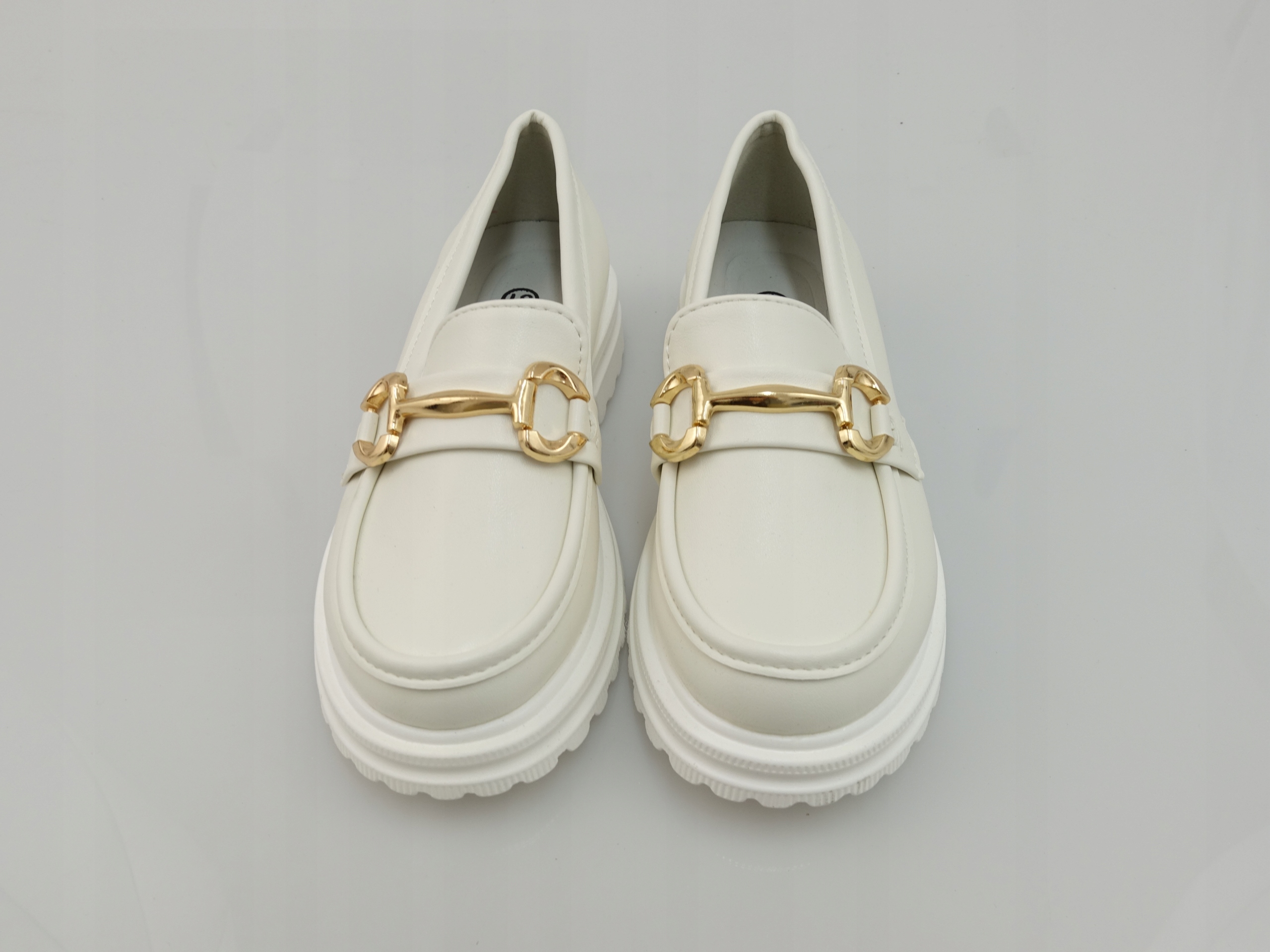 ЛОФЕРИ ДІВЧАЧІ МОКАСИНИ, ТУФІ, білі, З ПРЯЖКОЮ, екошкіра 32