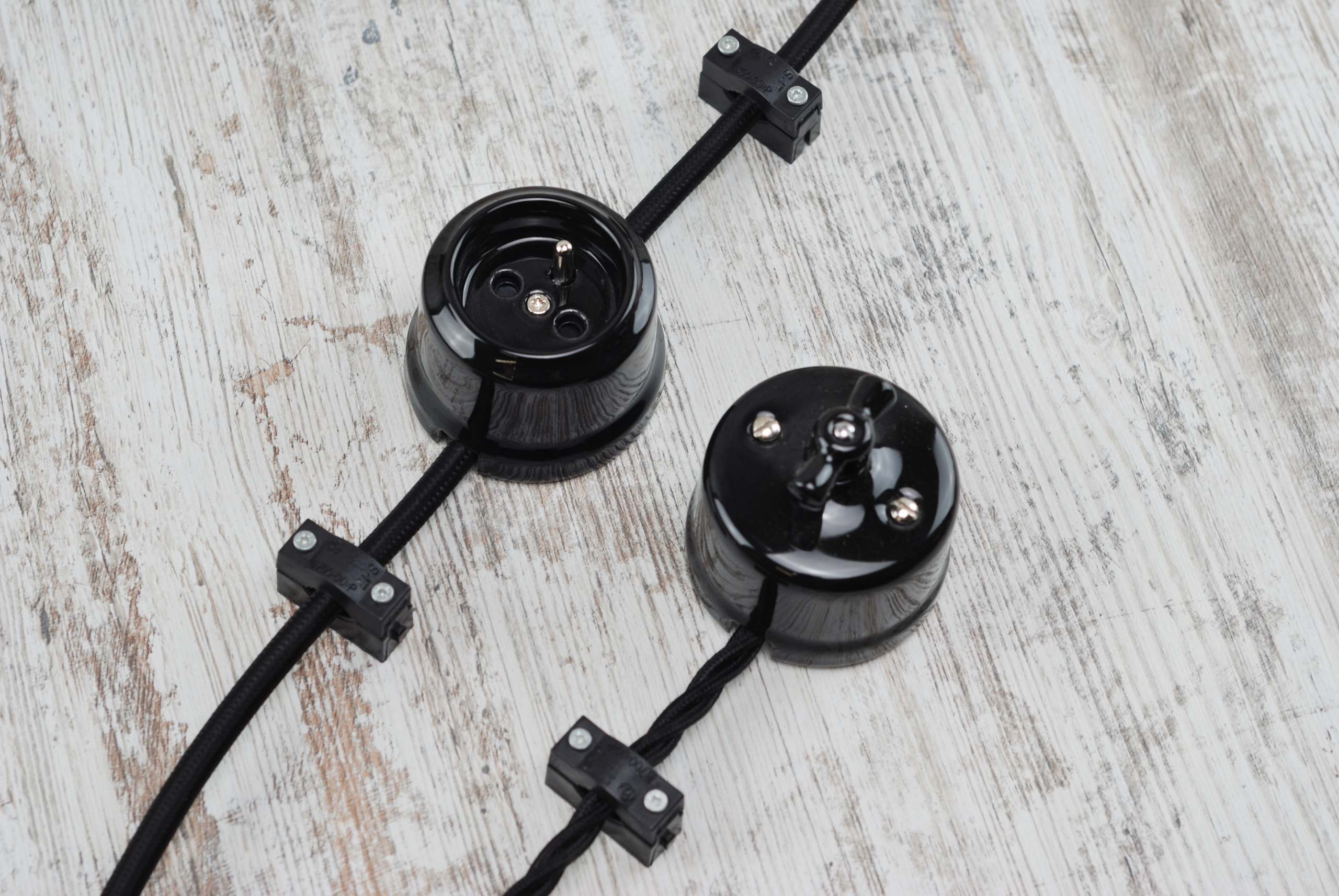 лофт чорний плетений кабельний тримач 3х1,5 3х2,5 мм лофт ретро