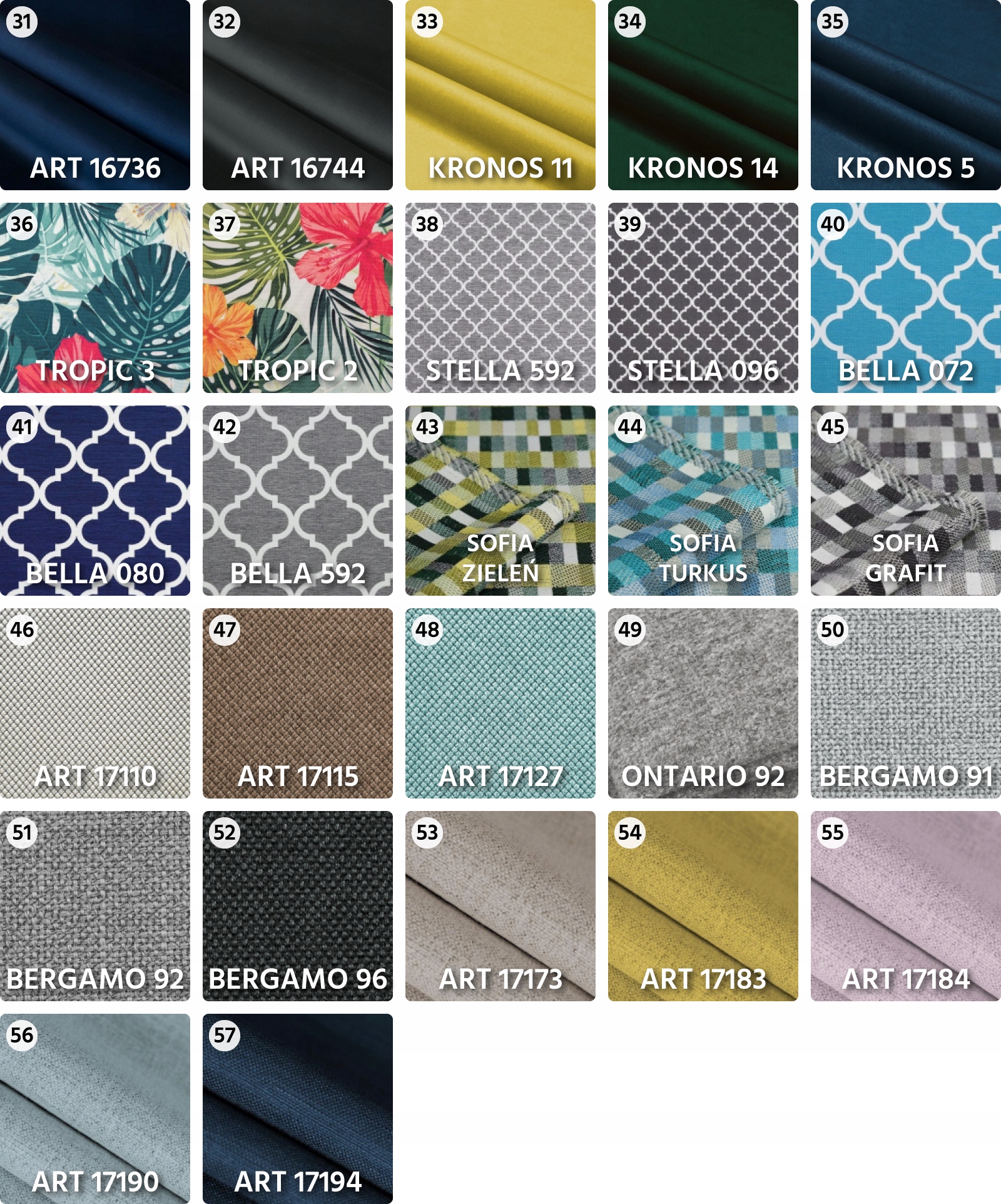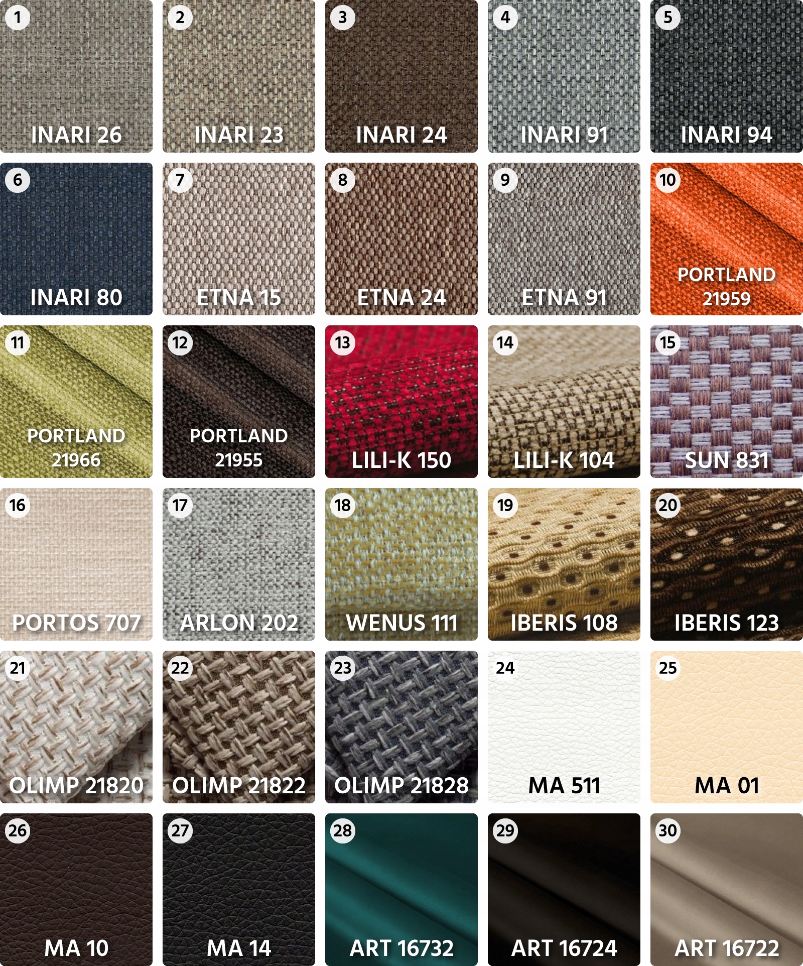 Палитра тканей на выбор: