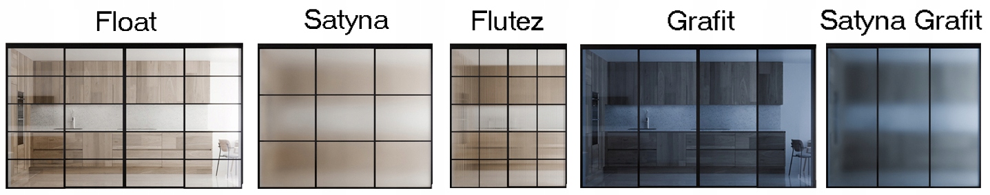 - Float (чистое стекло) – стойки приклеены к стеклу с обеих сторон