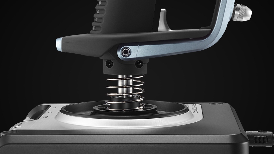 Система регулировки ручки в пяти позициях позволяет адаптироваться к своему собственному стилю захвата и размеру рук. Чтобы обеспечить максимальный комфорт во время удивительных полетов, у держателя джойстика также есть контуры, адаптированные к вашим пальцам.