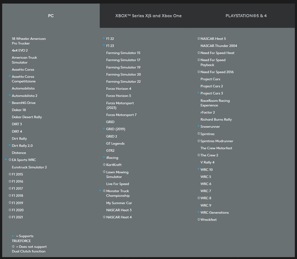 Эксклюзивная обратная связь TRUEFORCE напрямую связана с игровой физикой, обеспечивая беспрецедентный реализм. Премиум-конструкция с алюминиевыми переключателями передач, кожаным рулевым колесом, прошитым вручную, и тормозной системой, чувствительной к давлению.