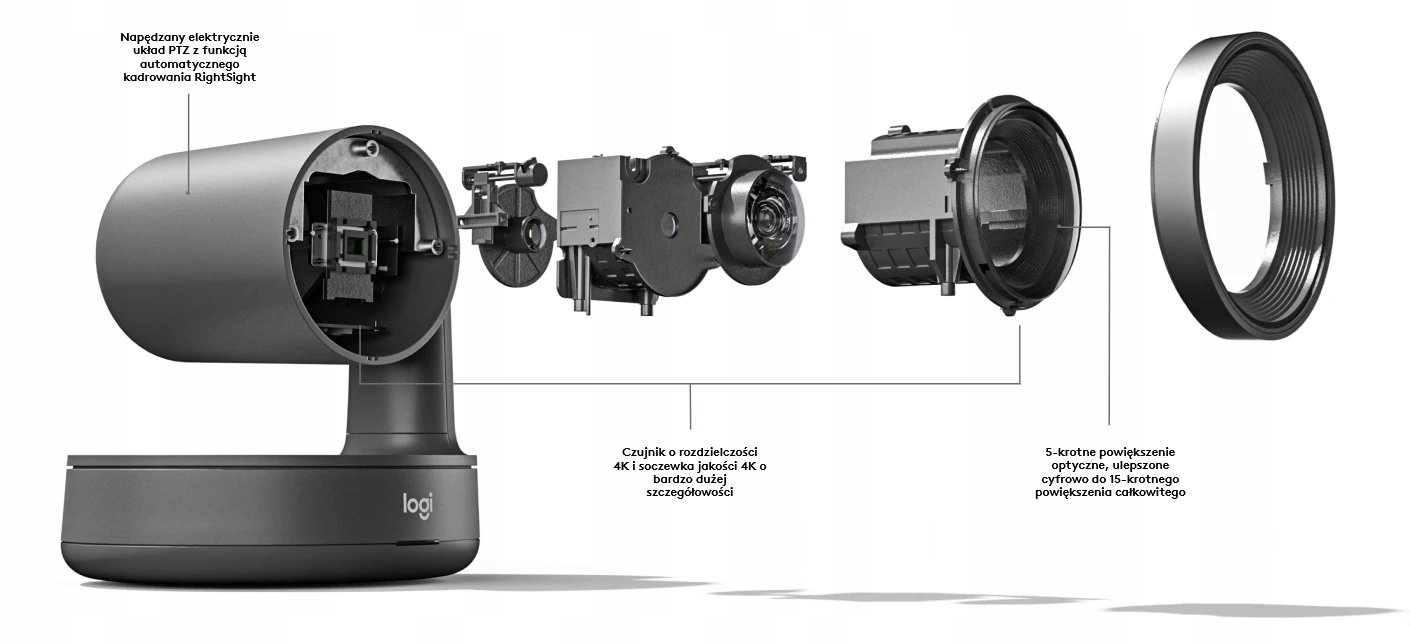 Для данной модели камеры характерны такие особенности, как: бесшумное механическое панорамирование, наклон, зум, а также широкий угол обзора по диагонали 90° и эффективный сенсор 4K. Благодаря этим решениям камера Rally будет охватывать каждого человека в помещении, сохраняя при этом превосходное качество изображения.