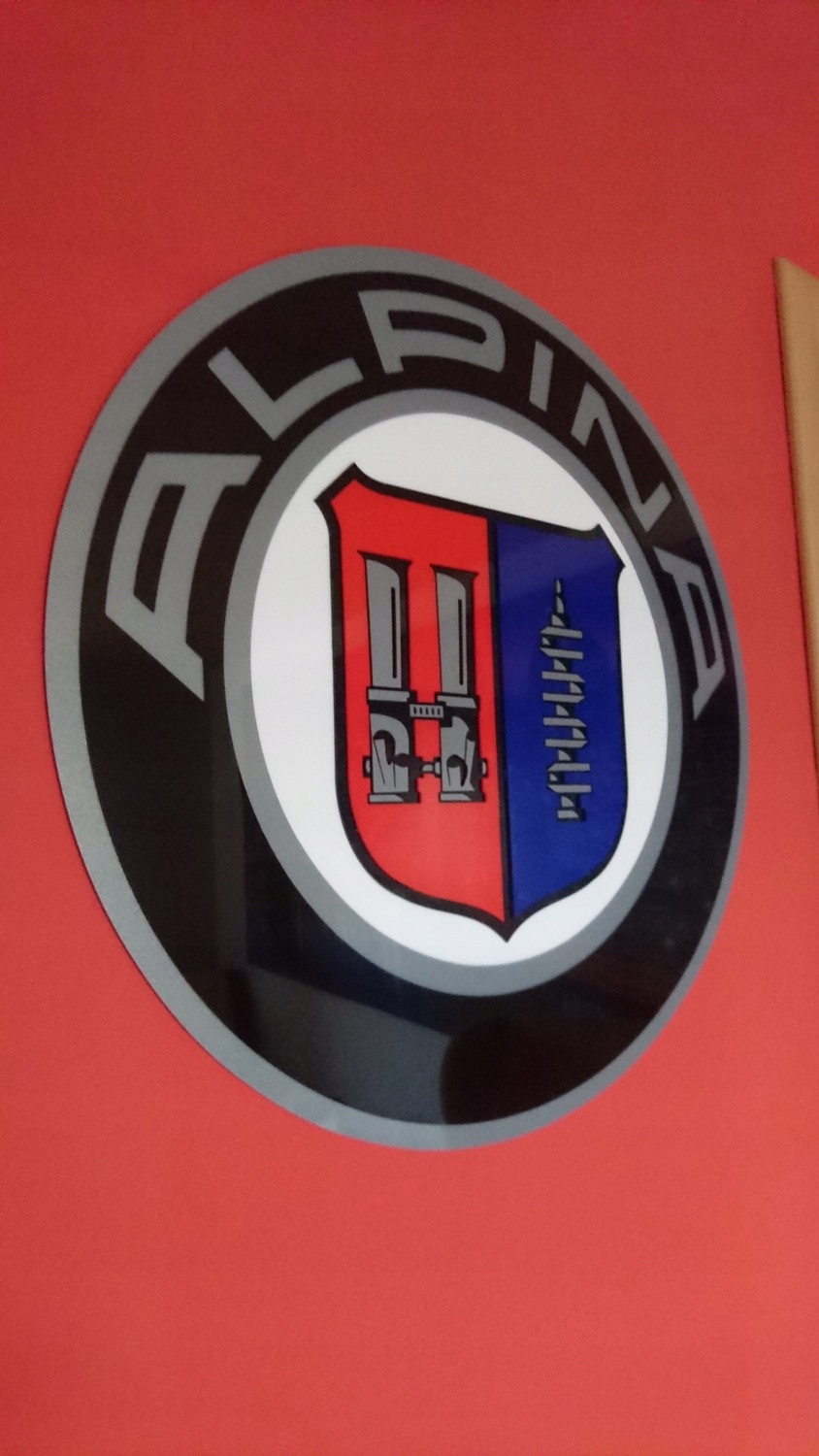 Логотип Alpina на стіні в подарунок до будинку в гаражі