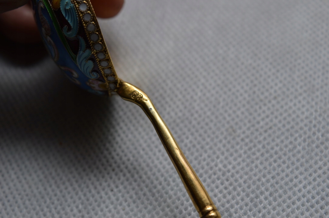 Здравствуйте, предлагаю Вам серебряную эмалированную ложку для икры.