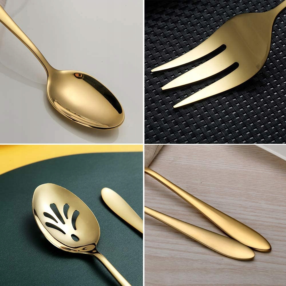 ЗОЛОТОЙ НАБОР СТОЛОВЫХ ПРИБОРОВ ДЛЯ САЛАТА, СЫРЬЯ И СОУСОВ.