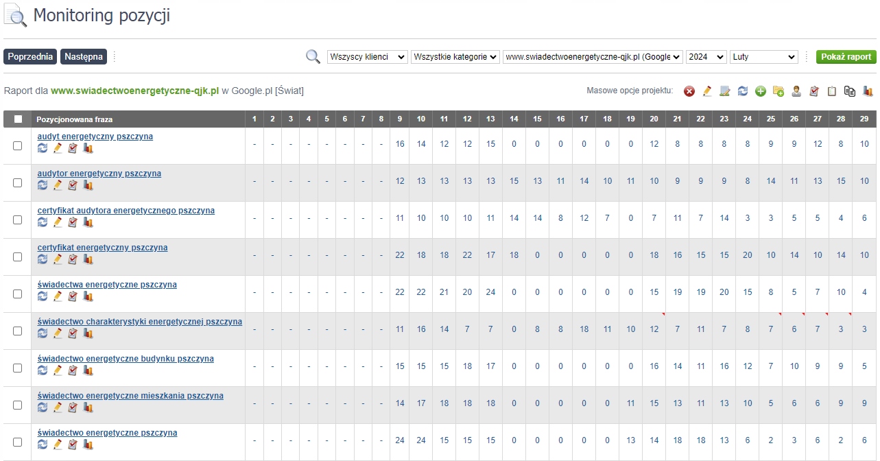 Ниже приведен пример реального клиента, которого мы обслуживаем за 100 злотых нетто (вы получите доступ к той же панели, где сможете отслеживать эффекты позиционирования).