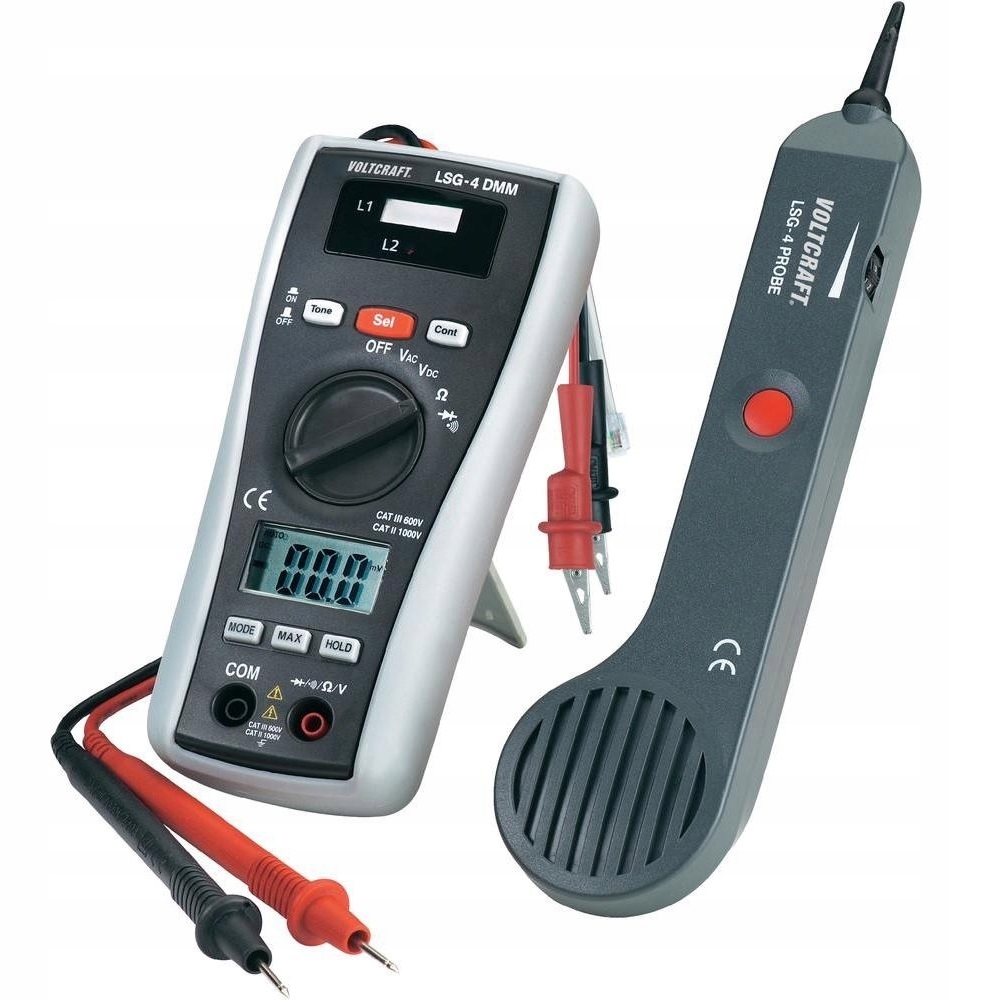 Цифровой мультиметр VOLTCRAFT LSG-4 позволяет находить кабели и поврежденные провода, использует высокочастотный генератор звука, модулирующий сигнал на проверяемом кабеле. Оснащен чрезвычайно чувствительным индукционным приемником, позволяющим обнаруживать кабели в стенах на глубине до 15 см. Это позволяет точно проверить трассу кабелей в стене. Сигнал от генератора можно передать на кабели, требующие измерения, с помощью вилки RJ11 или зажимов типа «крокодил». Также он соответствует всем стандартным функциям мультиметра.