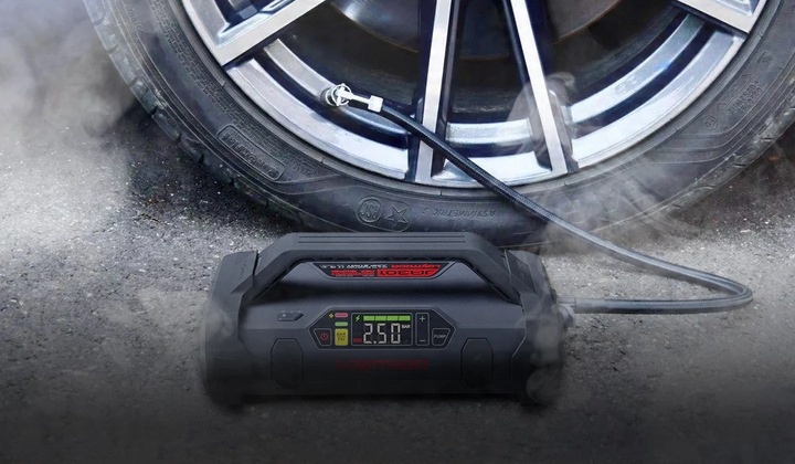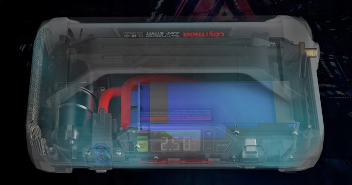 Lokitor JA301 оснащен очень мощным компрессором для накачивания шин. Для создания цифрового насоса был использован уникальный механизм турбонаддува, который более прочный, стабильный и менее шумный, чем стандартные портативные компрессоры.
