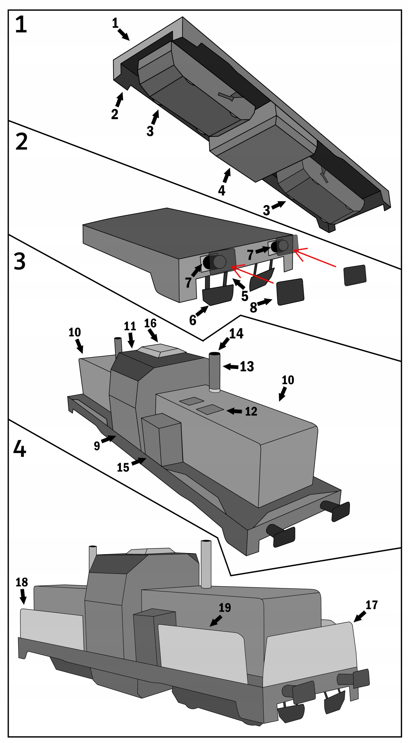 Модель очень легко собирается, содержит легко склеиваемые элементы, не требующие склеивания или скрепления картоном.