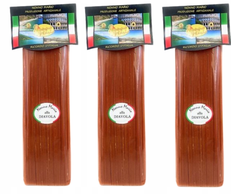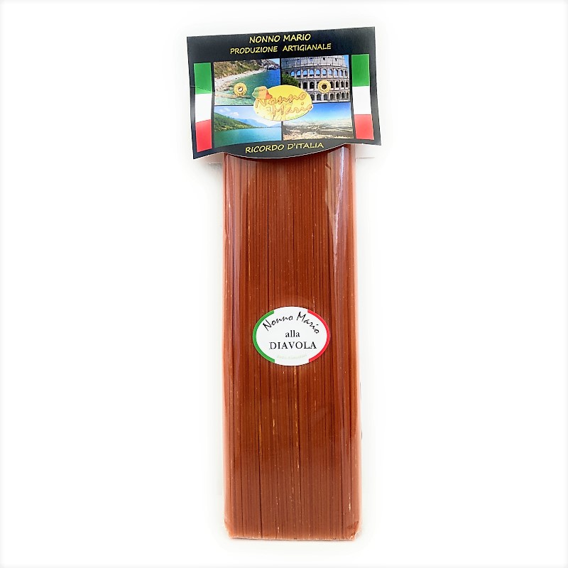 Вкусные и пряные спагетти алла диавола, изготавливаются путем добавления в смесь порошка чили и идеально подходят для легких и нежных соусов, идеально заправлены только сливочным маслом или оливковым маслом первого холодного отжима и измельченным чесноком и базиликом для усиления оригинального вкуса.
