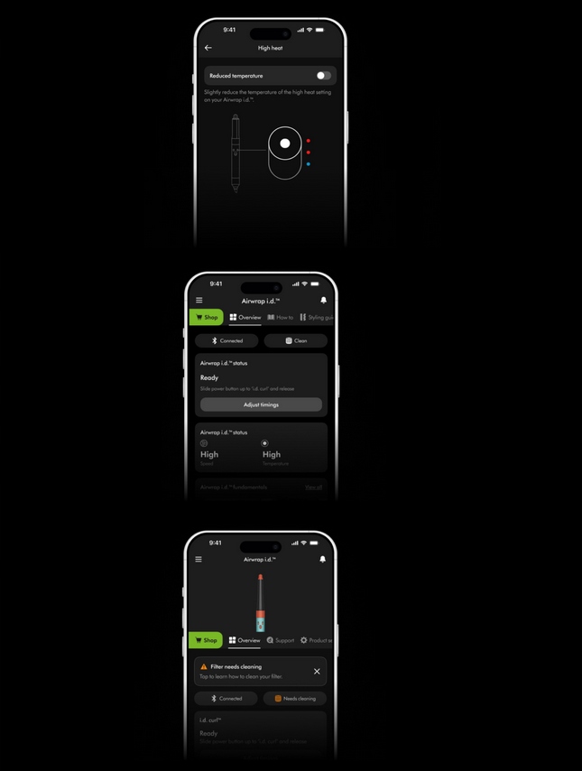 Регулярное обслуживание вашего мультистайлера Dyson Airwrap i.d.™ обеспечит его оптимальную работу. Приложение подскажет вам, когда и что делать.
